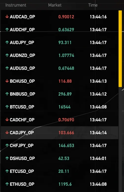 Traders at GC Option can access binary contracts on a focused list of 30+ financial instruments, including: