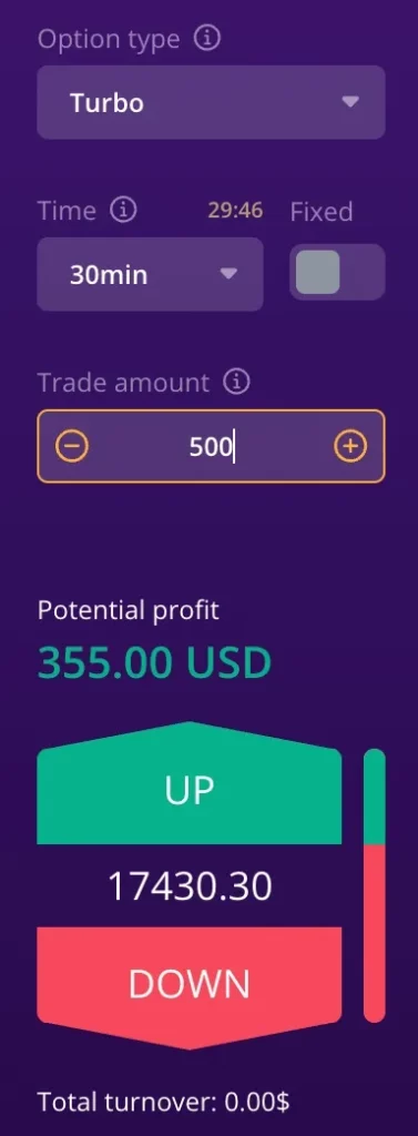 - Select the option type: Turbo, Intraday, or Long-Term