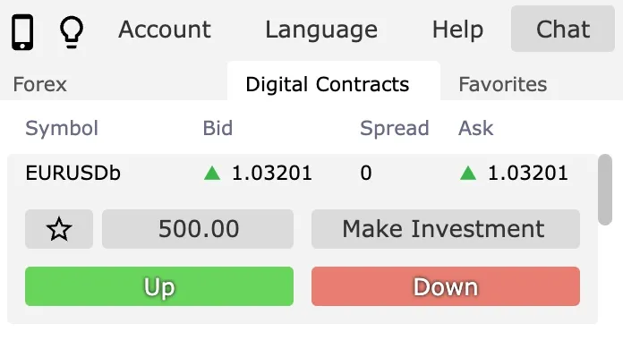Getting started with digital contracts at World Forex is fast and intuitive. Here’s a breakdown of the trading process: